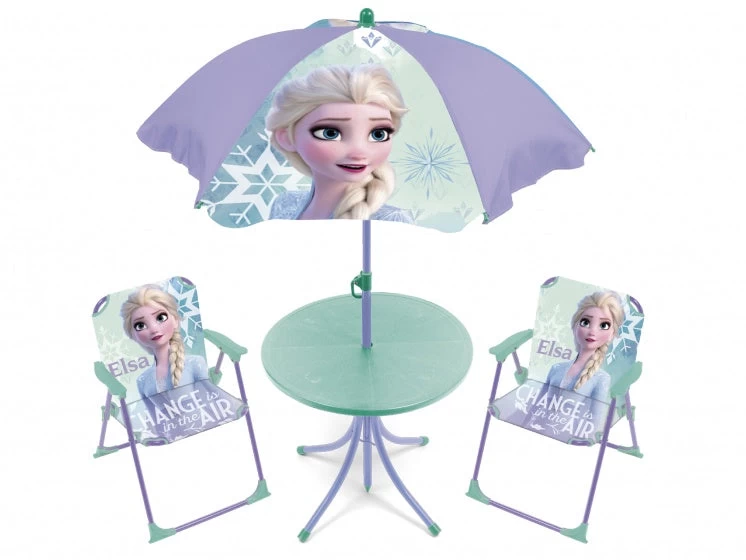 Deze supergave campingset is voorzien van afbeeldingen van Elsa! De set bestaat uit twee stoelen, een tafel en een parasol. Maak de mooiste tekeningen aan de tafel of lees lekker rustig een boekje in de comfortabele stoelen!