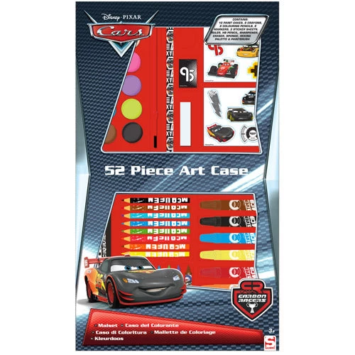 In deze grote kleurdoos zitten heel veel tekenmaterialen met Disney Cars thema. De set is 52-delig.