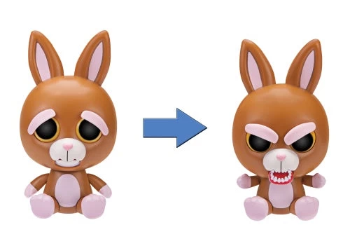 Dit schattige konijn is om op te eten zo lief! Maar pas op, als je op het hoofd drukt verandert de gezichtsuitdrukking en is hij ineens een stuk minder lief! De verschillende personages zorgen voor angstige gezichten en een grote lach.