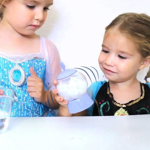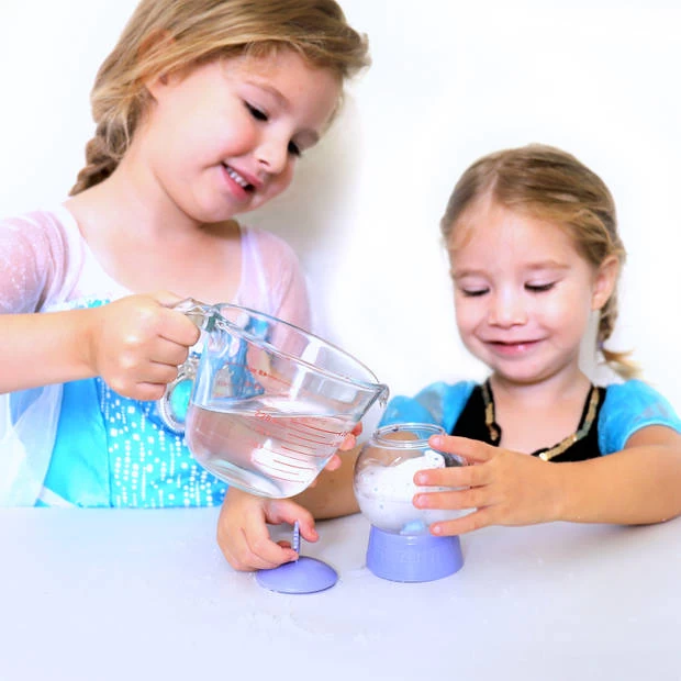 In deze prachtige Frozen sneeuwbol zit een kleine verassing verstopt. Haal de kroon er af en giet langzaam een bekertje water in de bol tot dat hij halverwege gevuld is. Plaats het kroontje weer stevig vast en schudden maar! Kijk hoe de sneeuwstorm zich ontwikkelt en haal het kroontje er af. Schud vervolgens alle sneeuw er uit, vul hem met water, voeg de glitters toe, kroontje vast zetten en zo is hij helemaal klaar! Je Frozen figuurtje staat er mooi in. Ben jij benieuwd welk figuurtje je zal krijgen? Probeer het nu uit!