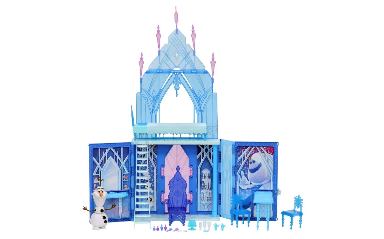 In de Disneyfilm Frozen woont Elsa op een bergtop in een majestueus paleis dat ze gemaakt heeft van ijs en sneeuw. Fans van Frozen zullen het heerlijk vinden om het draagbare Elsa’s ijspaleis overal mee te nemen. Ideaal om alle onvergetelijke filmscènes na te spelen en nieuwe avonturen te verzinnen met de 20 leuke accessoires, zoals een troon, een bed, een deken, 2 stoelen, snacks, kaptafelaccessoires én … Olaf! In Elsa’s uitklapbare ijspaleis van maar liefst 86 x 78 cm kunnen kinderen de tweede verdieping omhoog brengen en een tafel en kaptafel neerklappen. Nadat ze met hun Frozen-kasteel hebben gespeeld, kunnen ze er hun accessoires in opbergen, het kasteel inklappen en het opbergen voor een volgende speelbeurt … of het aan de draaggreep meenemen voor Frozen-speelplezier onderweg. Ontdek ook ander Frozen-speelgoed zoals de poppen Anna en Elsa om met hun favoriete zussenduo avonturen te beleven in het paleis! (Elk afzonderlijk verkrijgbaar. Zolang de voorraad strekt.) Copyright Disney. Hasbro en alle gerelateerde termen zijn handelsmerken van Hasbro.