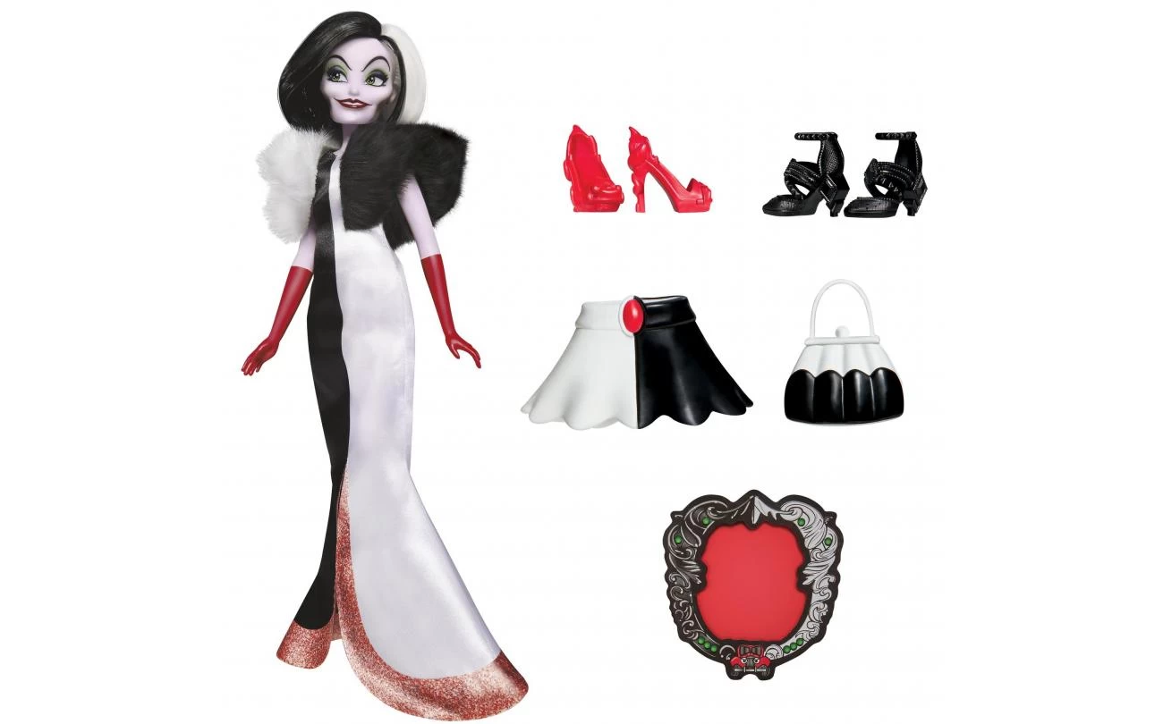 - CRUELLA DE VIL MODEPOP: de sinistere stijlmeesteres uit Disney’s 101 Dalmatiërs is een ongeveer 28 centimeter grote modepop met een fantastische outfit en accessoires